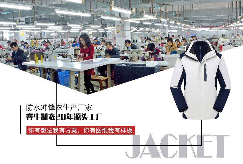 秋冬戶外三合一搖粒絨沖鋒衣定制加工找睿牛制衣(思諾華服飾